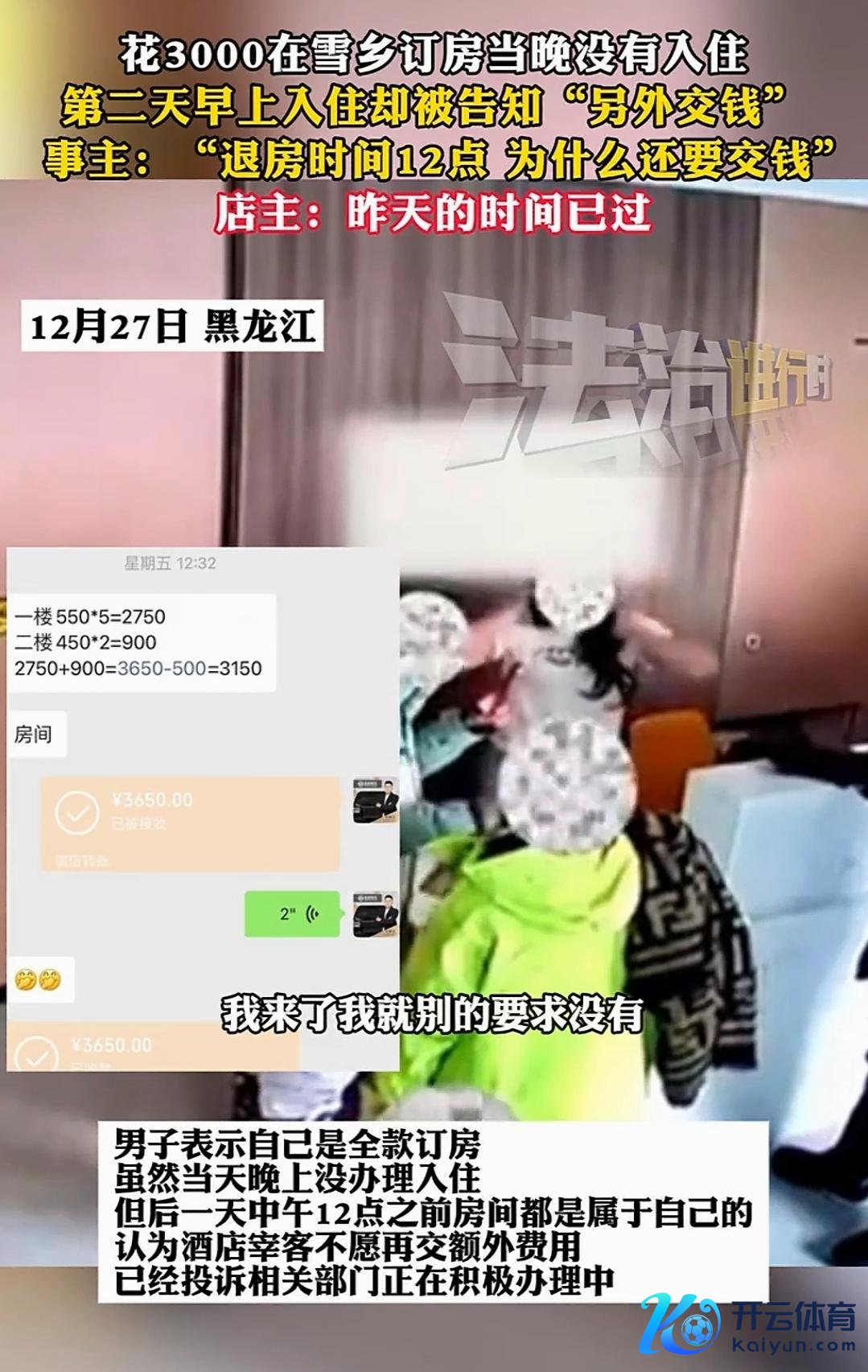 近日,黑龙江雪乡一家旅店的“宰客”手脚激发了公众的广博温和和热议。 一男人花3000多元在该旅店全款订房,今日晚上未到旅店办理入住,第二天早上去入住时,却被前台“昨天的本领一经由了”为由拒却,条件另酬酢钱才可入住。 这位男人在雪乡这家旅店预订了7间房,一楼5间,二楼2间,共计3000多元,男人支付了全款。 由于天气原因,他们一滑东说念主当晚被困在山上,车辆被堕入雪地,只可在车里渡过了今夜。 第二天一早,他们到达旅店,但愿旅店大要开一间房给女东说念主和孩子休息一下,从7点到12点就行,但被前台东