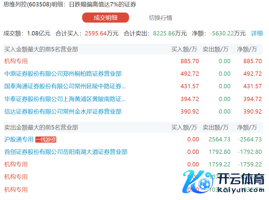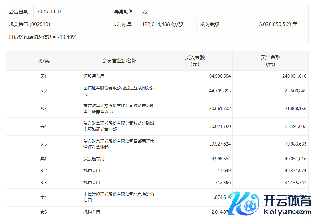 凯好意思特气当天跌9.96%,有3家机构专用席位净卖出1.08亿元凯好意思特气当天跌9.96%,有3家机构专用席位净卖出1.08亿元