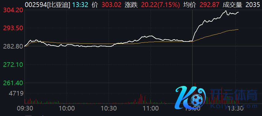 2月6日,比亚迪午后大幅拉升,股价重回300元。驱散逸稿开yun体育网,该股涨超7%,成交额近63亿元。